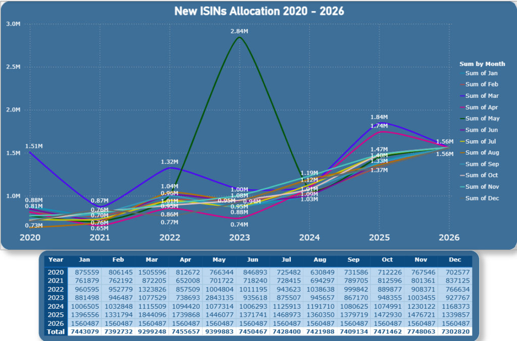 2020-2026 Monthly New ISINs